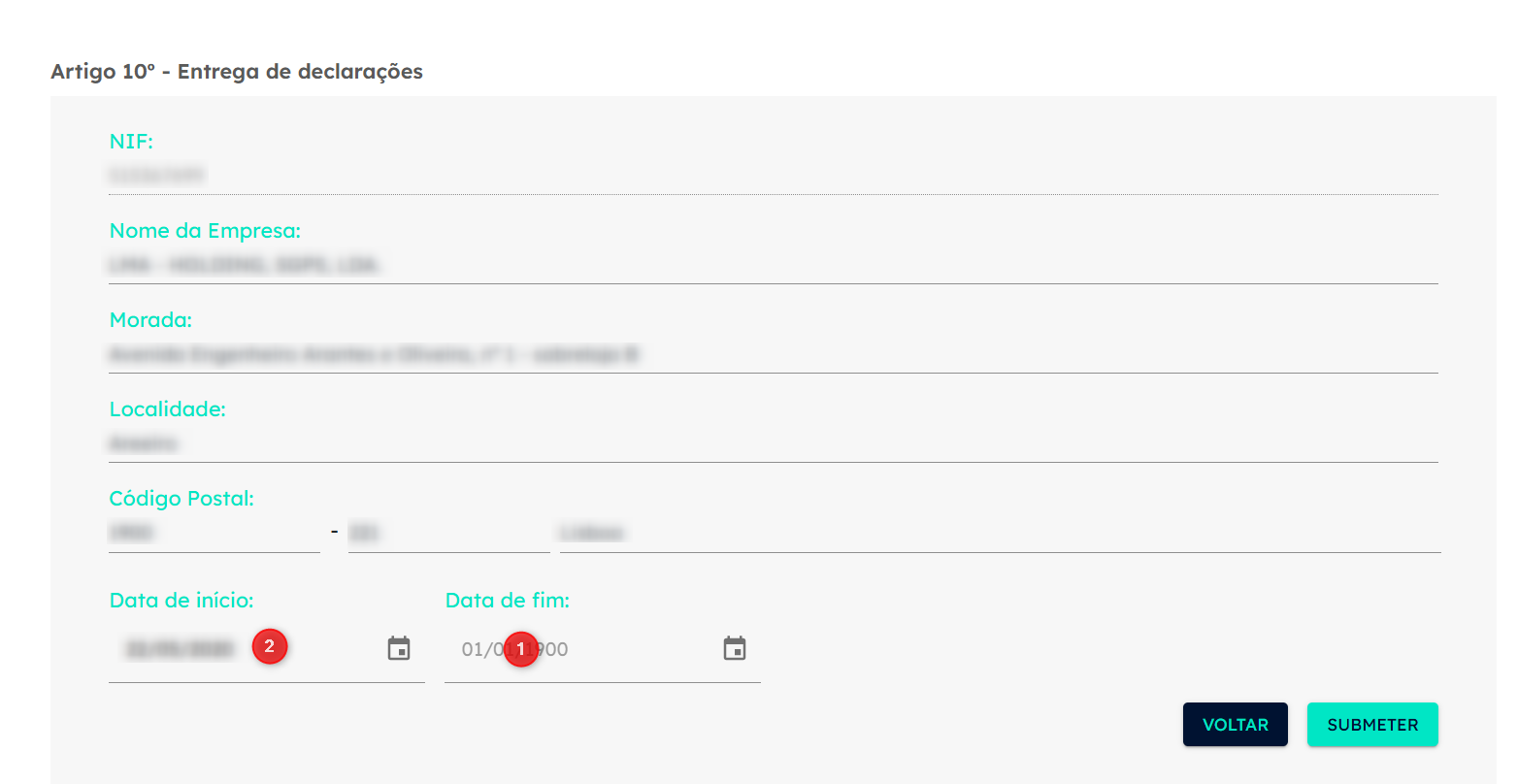 - Informação do Contabilista - Início e termo como responsável pela contabilidade - entrega de declarações;