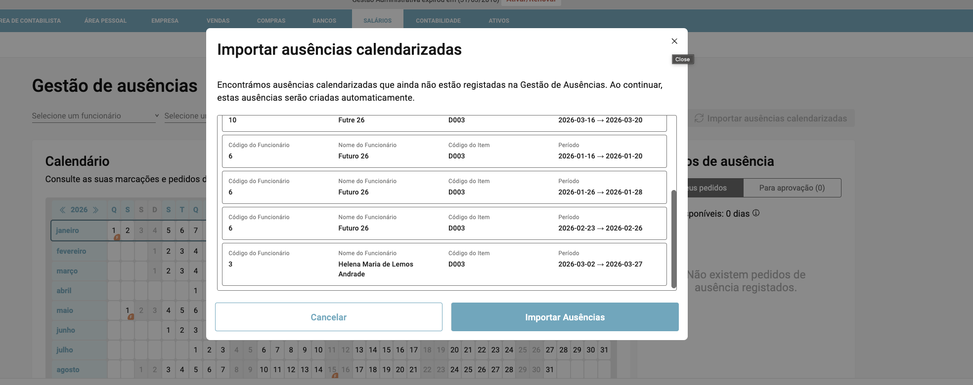 Caso deseje fazer a importação automática, clique no botão "Importar Ausências".